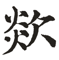 [ 首尾分解查字 ]:炎欠(yanqian) [ 汉字部件构造 ]:火火欠
